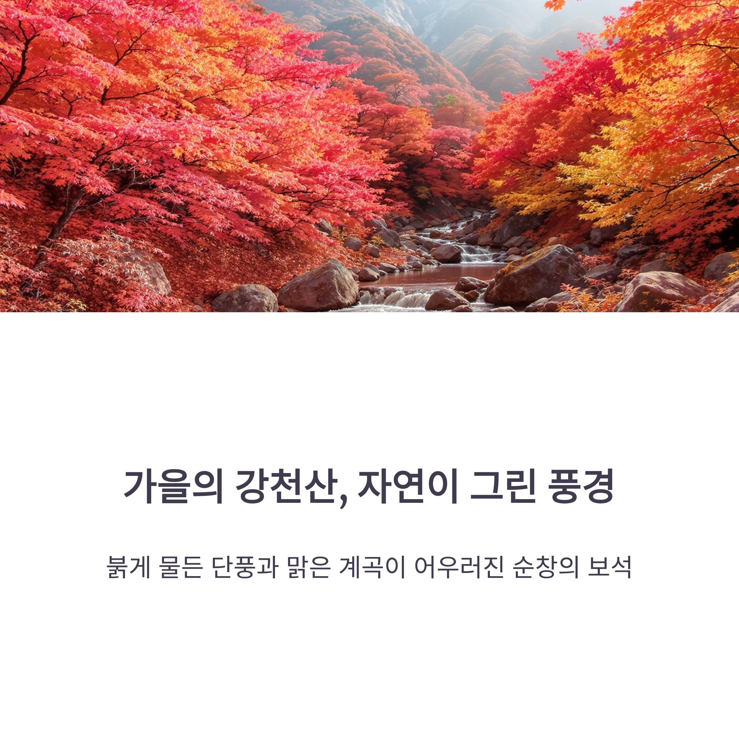 - 최적의 방문 시기: 단연 10월 말 ~ 11월 초가 최고예요! 이때 강천산은 온통 붉고 노란 단풍으로 물든답니다.