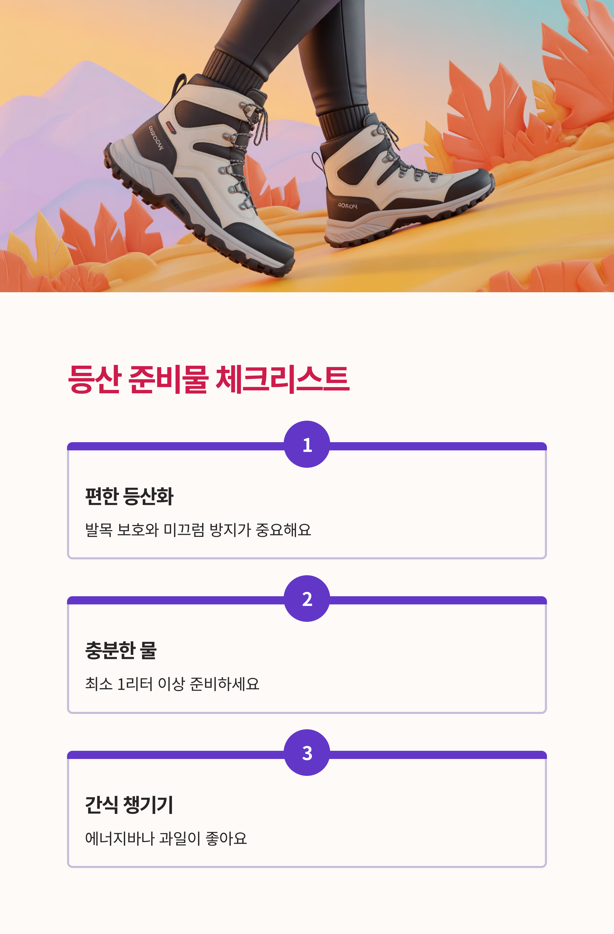 어떤 코스를 선택하든, 안전하고 즐거운 등산을 위해서는 몇 가지 준비가 필요해요. 제가 등산할 때 늘 챙기는 것들을 알려드릴게요!