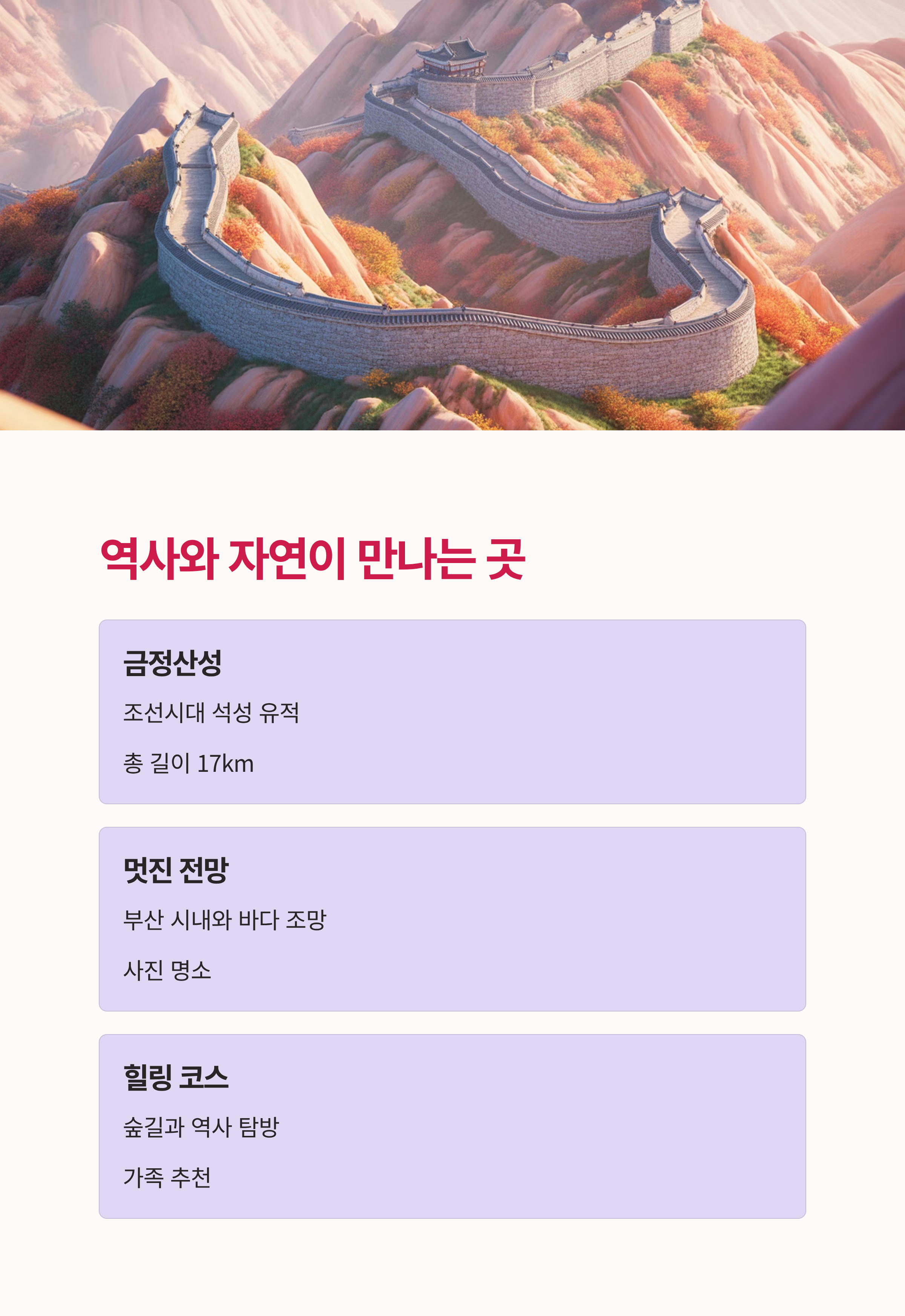- 초보자에게는 범어사 코스: 대중교통 접근성이 좋고 비교적 완만해서 부담 없이 금정산의 매력을 느낄 수 있어요.