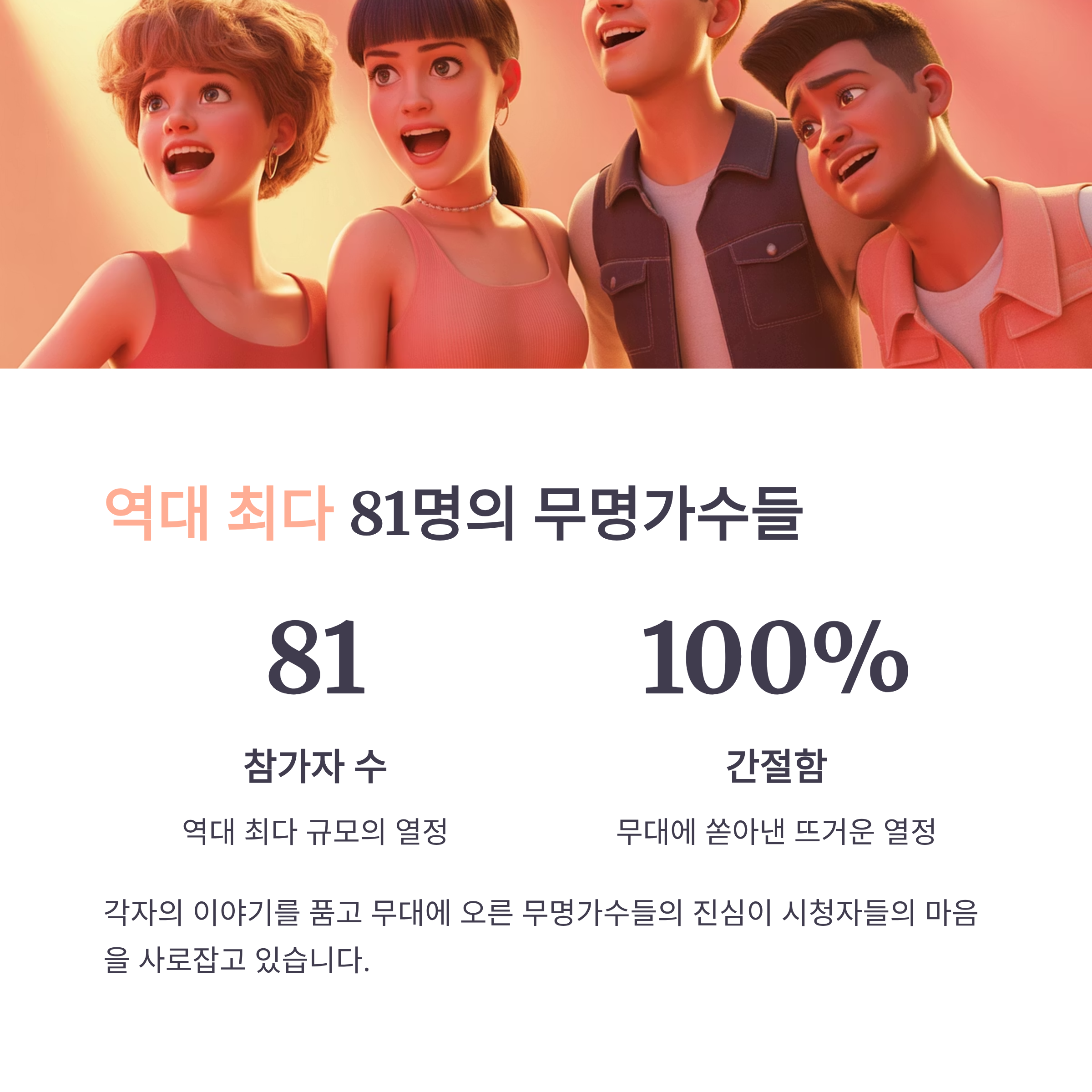 무명 가수들의 절박한 사연과 숨겨진 기량은 첫 방송부터 시청자들의 마음을 사로잡기에 충분했습니다.