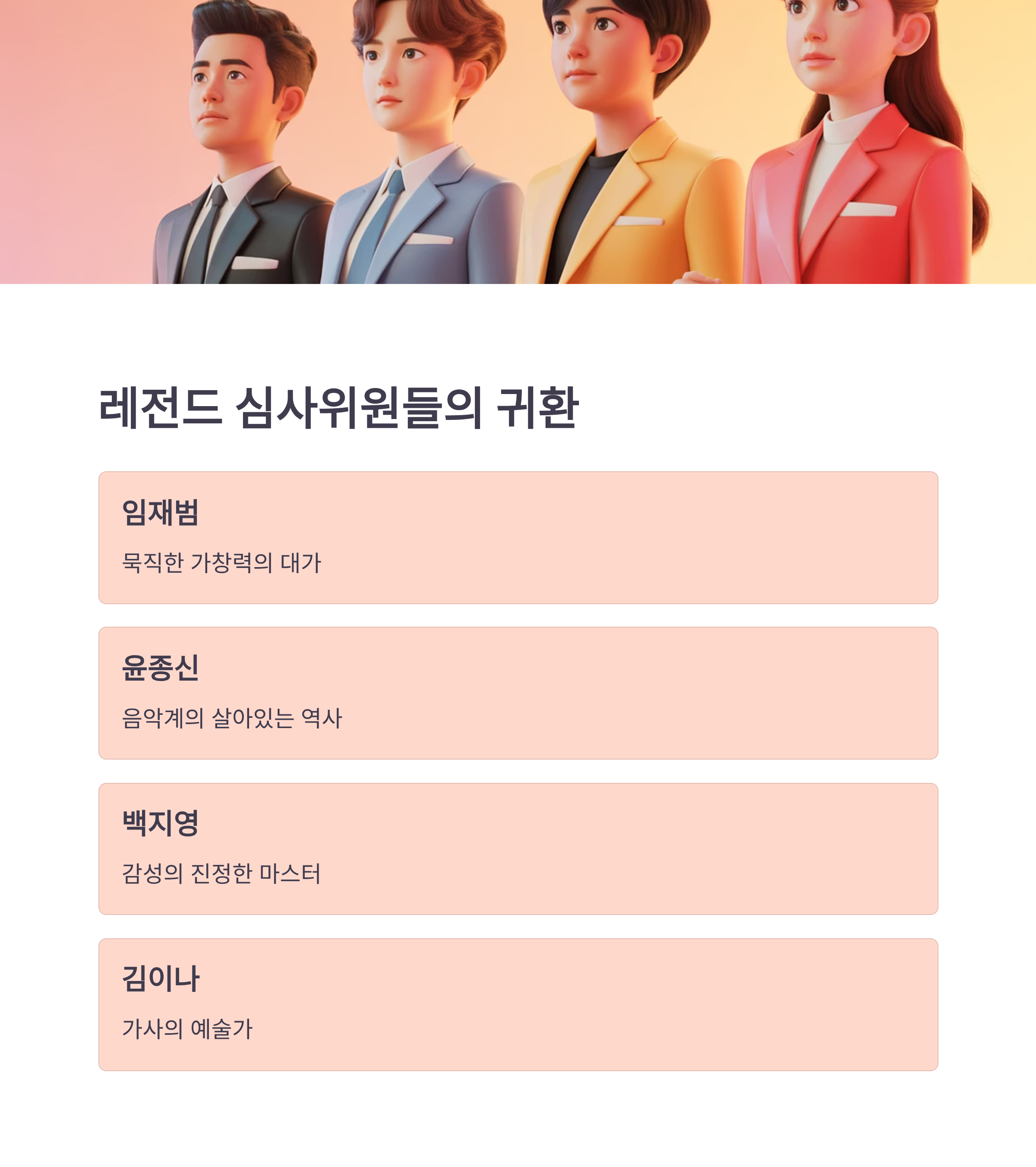 '레전드의 귀환' 시니어 심사위원 라인업 분석