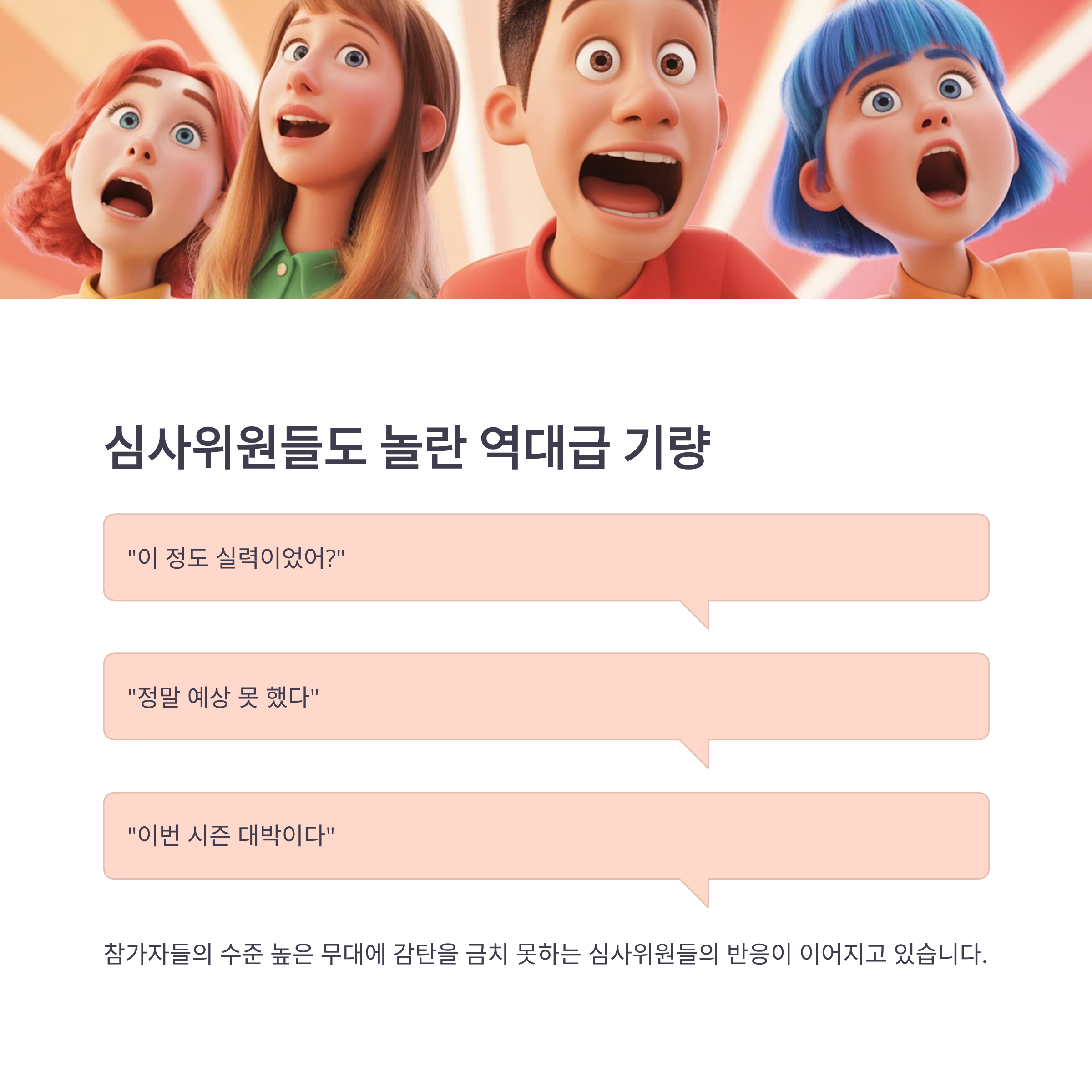 특히 참가자들의 장르적 해석 능력이 이전 시즌보다 훨씬 다양해졌다는 평가가 많죠.