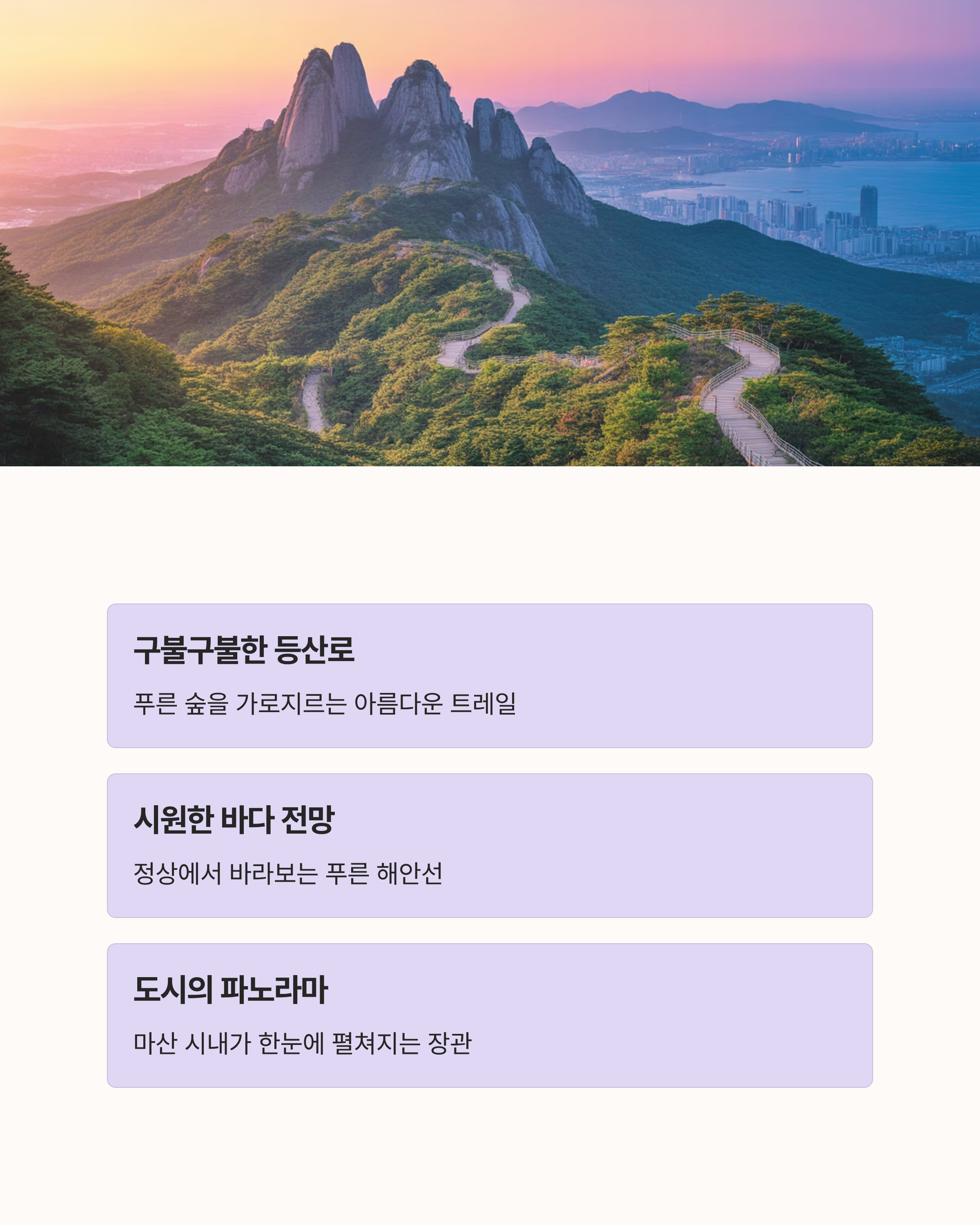 - 무학산의 매력: 마산 앞바다와 창원 시가지가 한눈에 보이는 환상적인 조망이 일품이며, 사계절 내내 아름다운 풍경을 자랑해요.