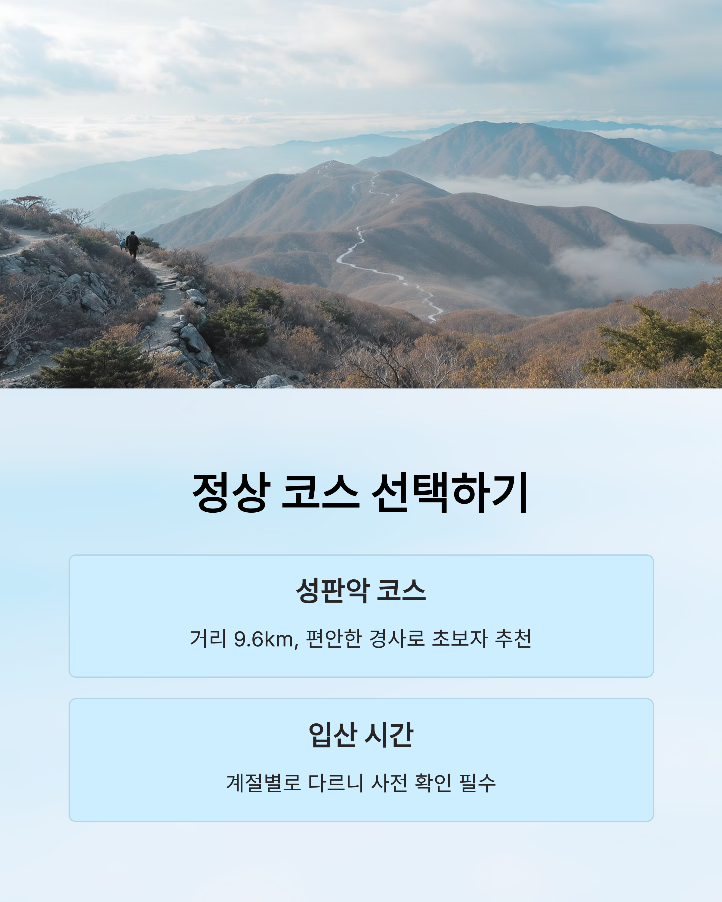 - 헤드 랜턴: 동절기 새벽 입산 시 안전을 위해 필수입니다.