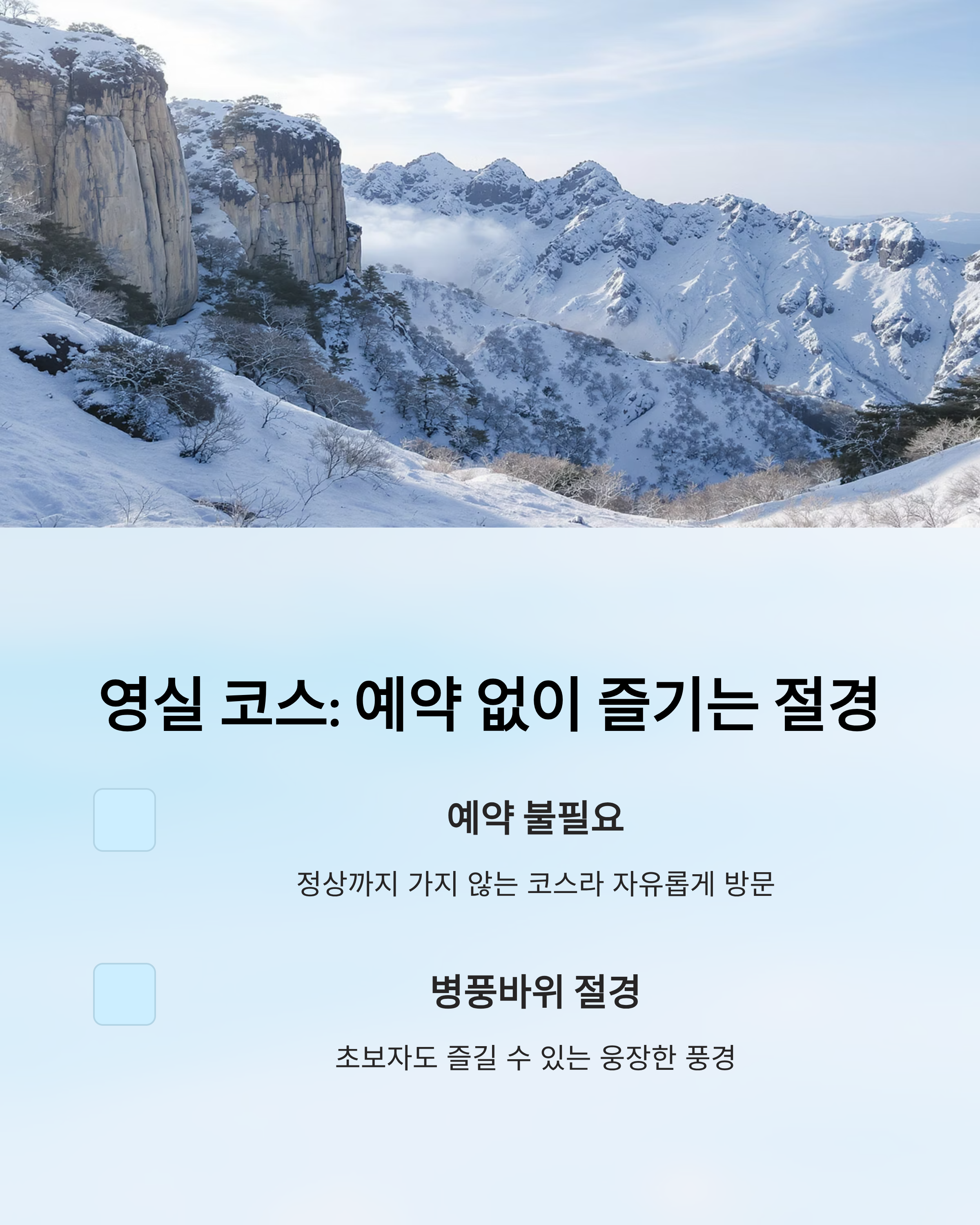 영실기암과 오백나한 등 병풍 같은 절경을 감상할 수 있습니다.