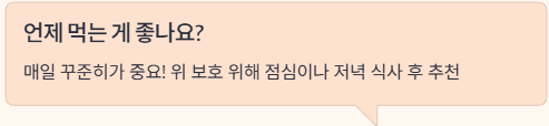 가장 중요한 것은 공복에 드시는 것을 피해야 한다는 점이에요. 위가 약한 분들은 특히 식사 후에 드시는 것이 속 쓰림을 예방할 수 있는 가장 좋은 방법입니다. 그리고 꾸준히! 매일 정량을 섭취하는 것이 중요해요.