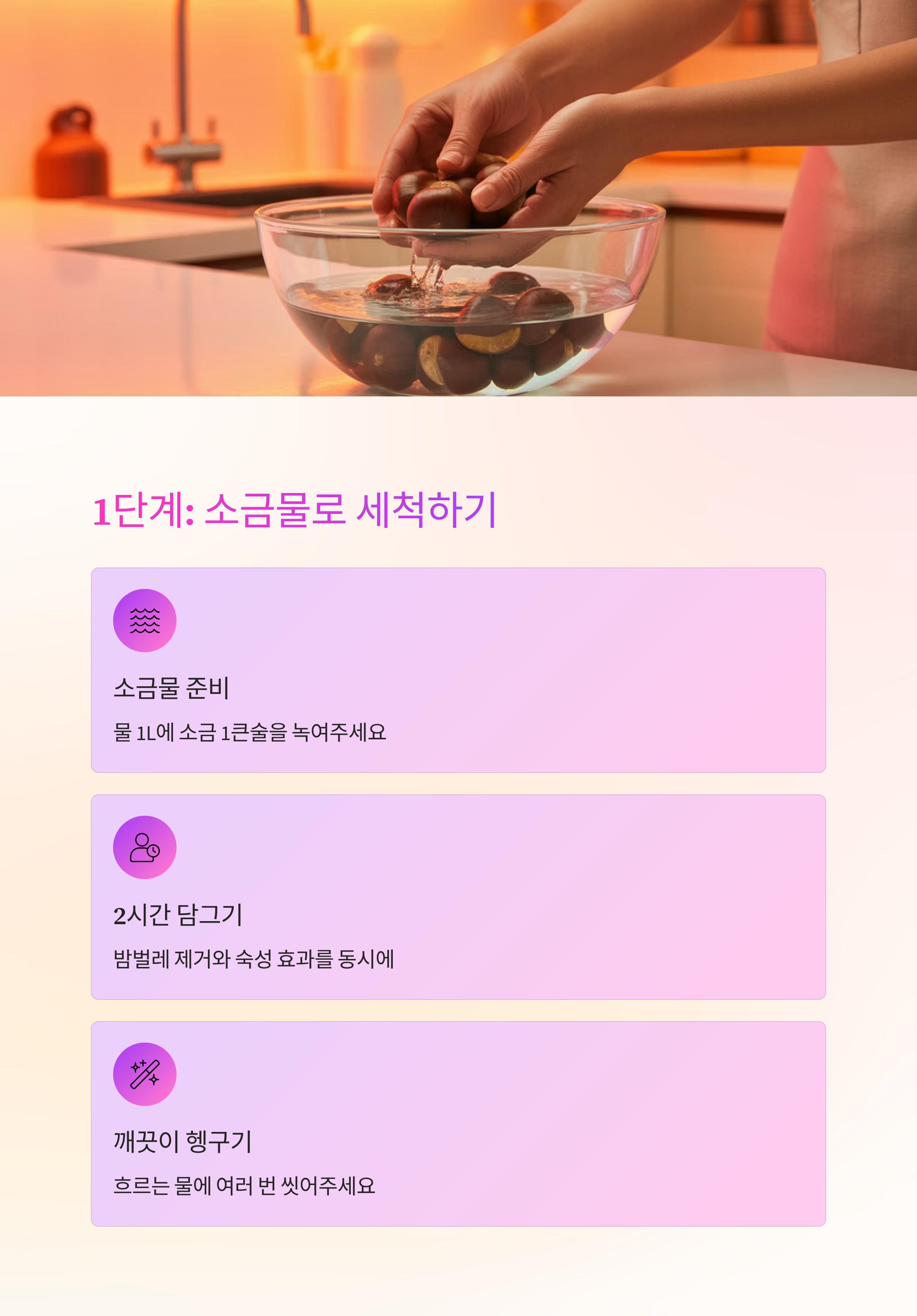 1. 밤벌레와 부패를 막는 첫 관문: 소금물 세척 및 숙성