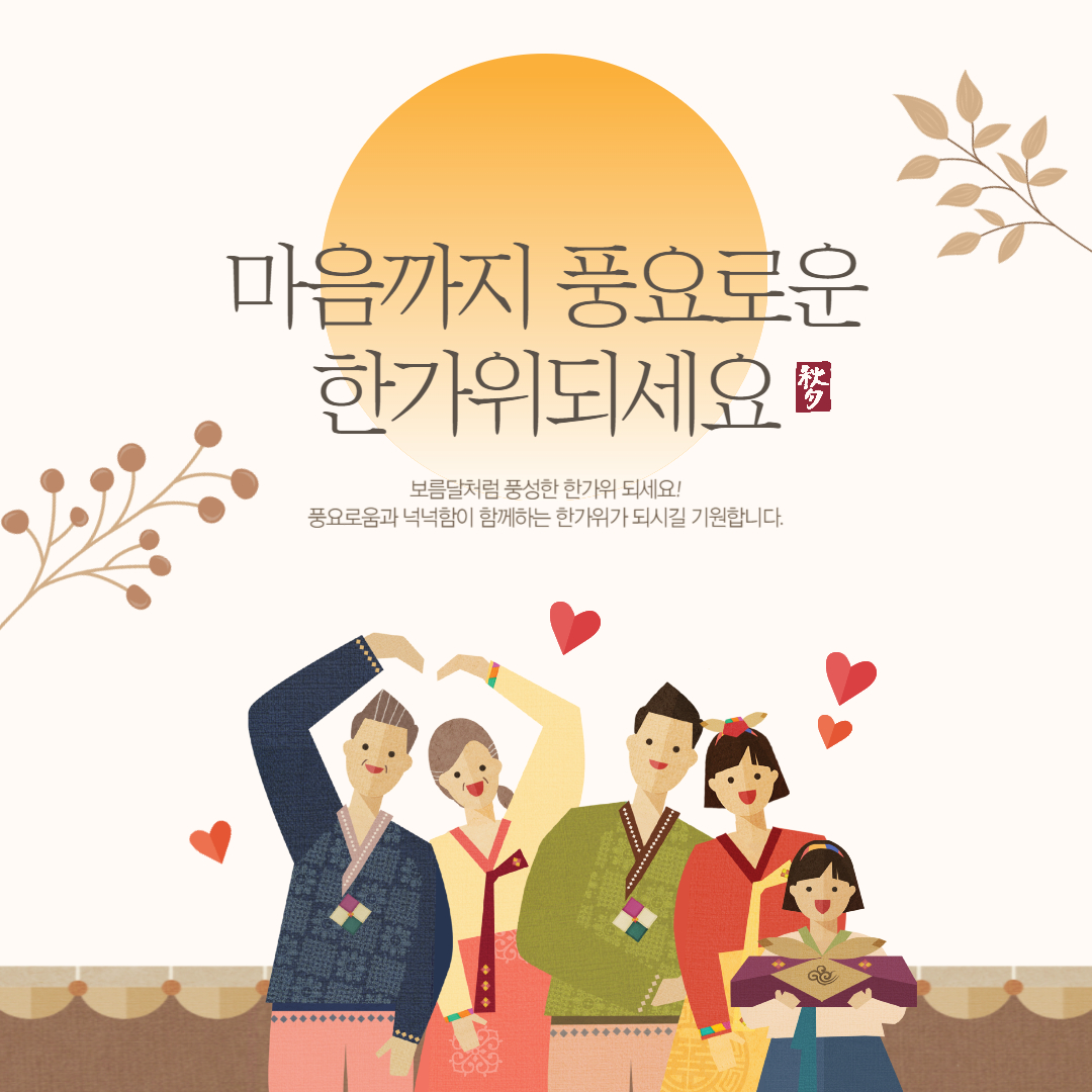 - 사랑과 감사를 담은 문구: "어머니, 아버지, 풍요로운 한가위 보내세요. 늘 저희를 위해 베풀어주시는 사랑에 감사드립니다. 보름달처럼 풍성하고 행복한 명절 되시길 바랍니다. 맛있는 음식 많이 드시고 건강하세요. 사랑합니다."