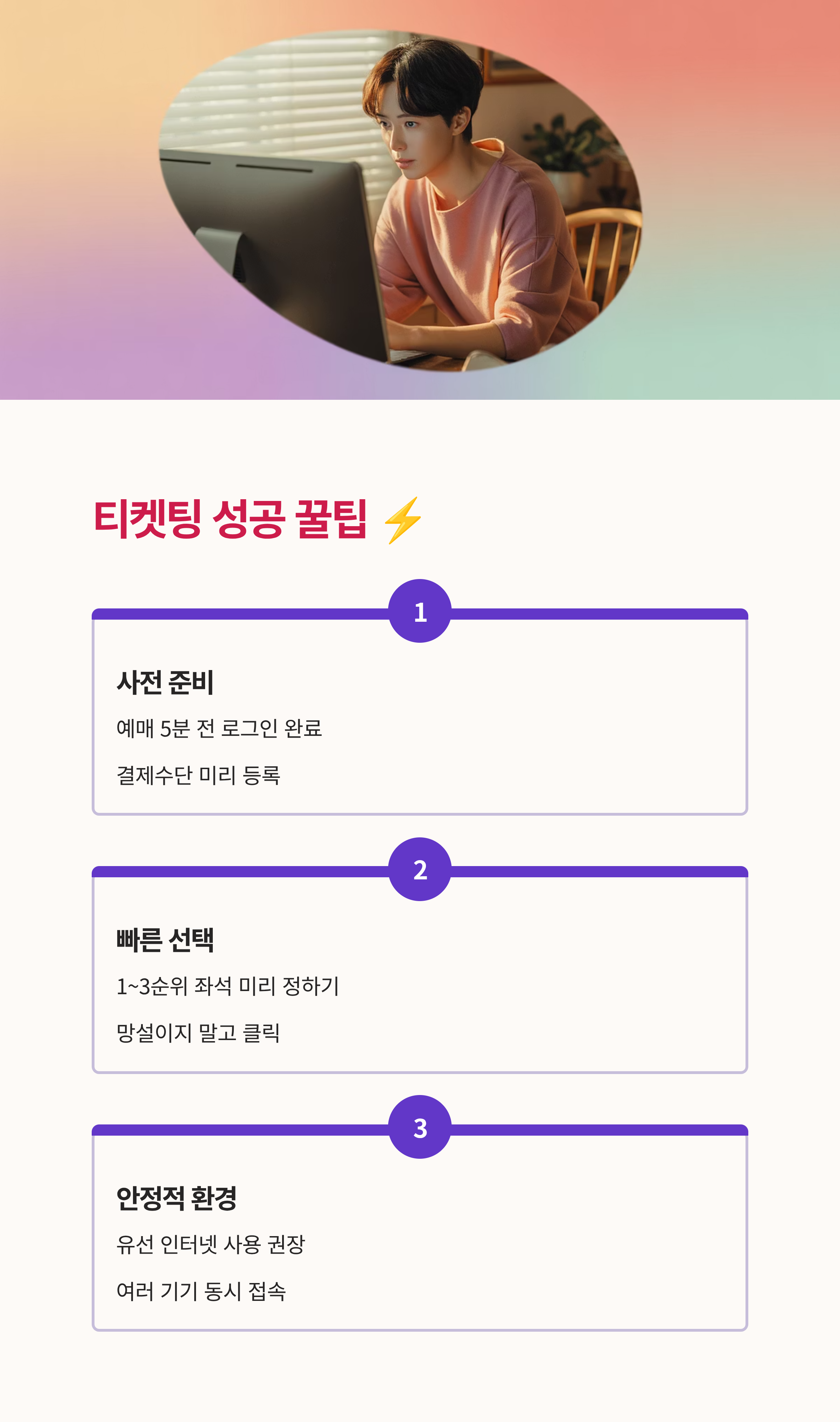 세 가지 핵심 전략으로 성공적인 티켓팅을 이끌어낼 수 있습니다.