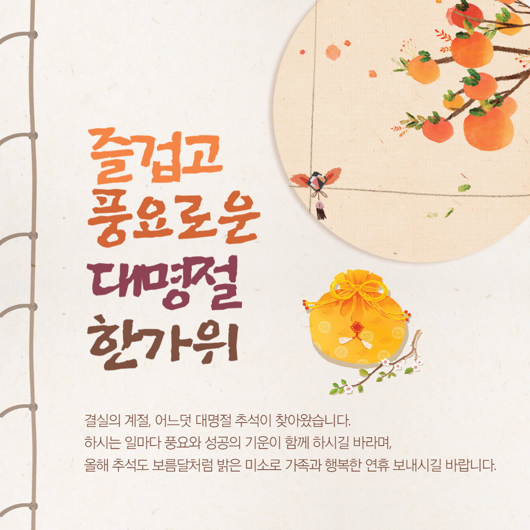 | 거래처/고객 | 귀사의 무궁한 발전과 번영을 기원합니다. 추석 명절, 소중한 분들과 행복한 시간 보내시길 바랍니다. |